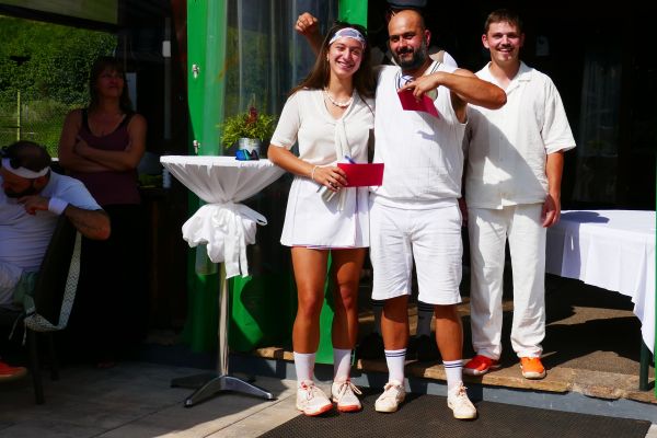 Begonnen hat der Tag traditionsgemäß mit einem Weißwurstfrühstück. Der Reuttener Altbürgermeister Sigi Singer hätte dazu wohl gesagt, "... das gibt einem gesunden Menschen Kraft". Nach unzähligen Begegnungen stand am Ende des Tages die Siegerpaarung fest. Spohia Wohlgenannt und Alexander Gläser freuten sich über den Hauptpreis aus der Hand von Sportwart Maximilian Weber. Aber Sieger waren sie alle, die bis zu Turnierschluss durchgehalten haben. Zum Tagesausklang zeigte Grillmeister Robert Schifftner, was er am Kasten hat. Da haben einige mehrmals am selbstgebastelten Grill vorbeigeschaut, um sich einen kleinen Nachschlag zu gönnen.